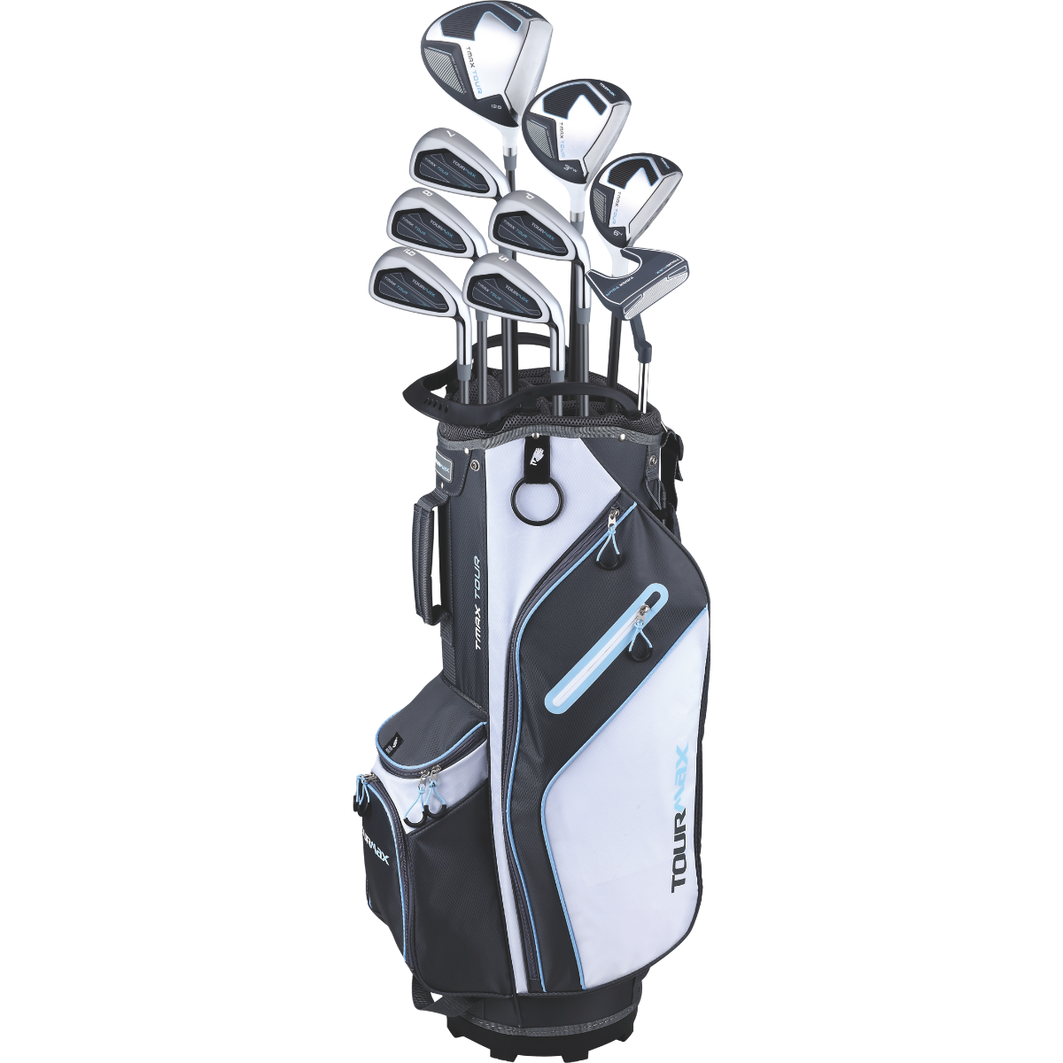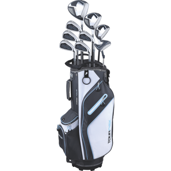 The TMAX TOUR Ladies’ Golf Set features a full complement of clubs including a high-performance driver with advanced aerodynamics, a versatile #3 fairway wood for long-distance accuracy, and a forgiving #5 hybrid designed to bridge the gap between woods and irons. The set includes 6-PW cavity-back irons engineered for consistency and control, plus a precision mallet-style putter to enhance your short game.